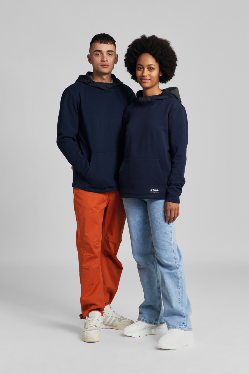 De buitenstof bestaat uit 100% zacht katoen en de kap uit 100% polyester, voor optimaal draagcomfort en duurzaamheid. Deze hoodie laat zich bovendien perfect combineren met de STIHL Utility bodywarmer, voor een sportieve en verzorgde look tijdens elke activiteit.